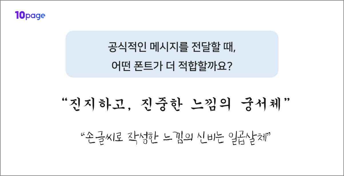 예를 들어, 진지한 내용을 전달할 때 궁서체를 사용할 수 있는데요.