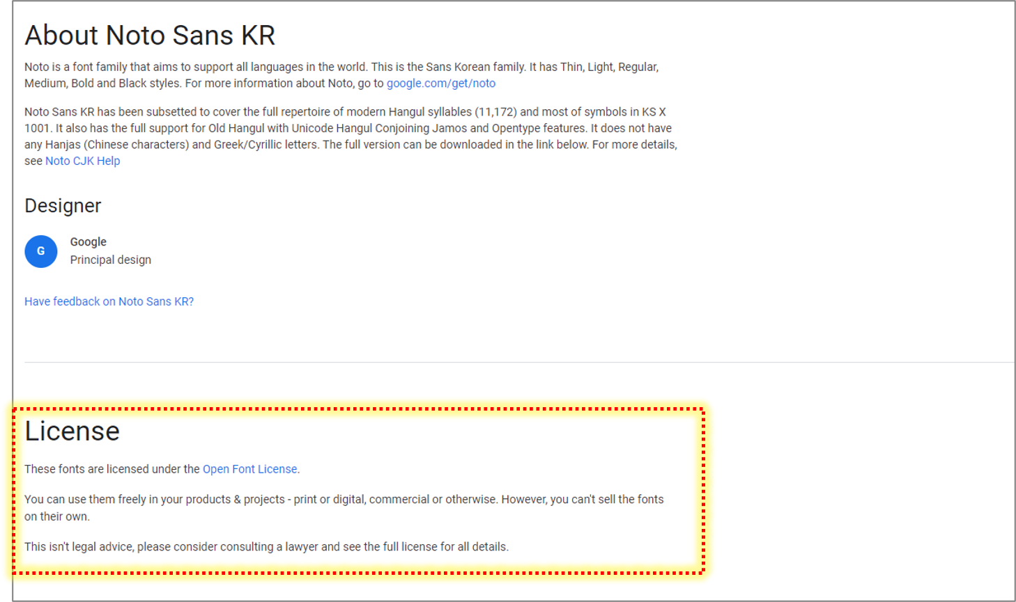 구글폰트에서는 대부분 오픈 라이선스를 제공합니다.