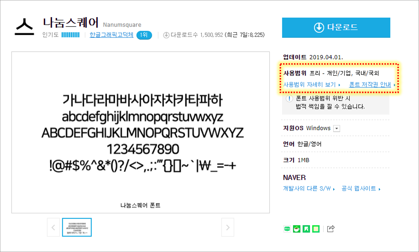 다운로드 페이지에서 정확한 사용범위를 한 번 더 확인해보시길 바랍니다.