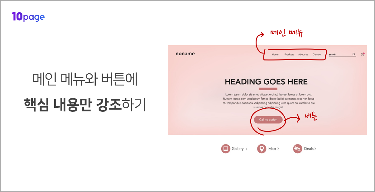 주로 메인 메뉴나 버튼에 중요한 내용을 배치하실 텐데요.