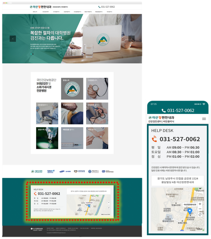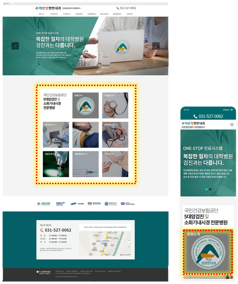 두 번째, 아산장편한내과 웹사이트를 살펴보겠습니다.