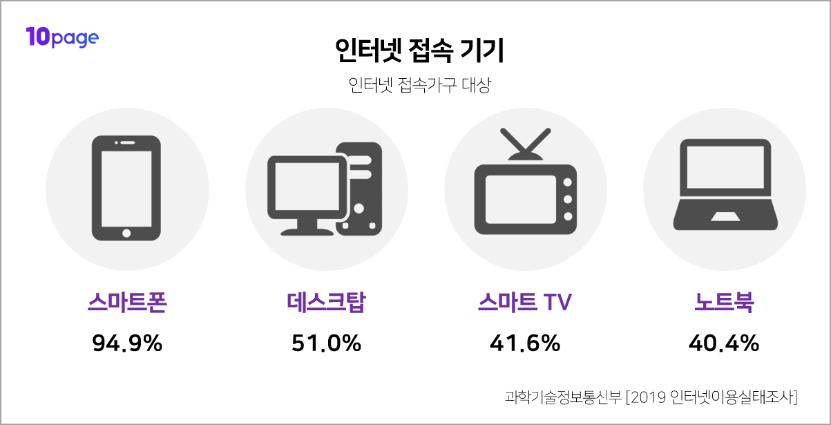 스마트폰을 통해 인터넷 접속하는 가구가 94.9%에 달하는데요.