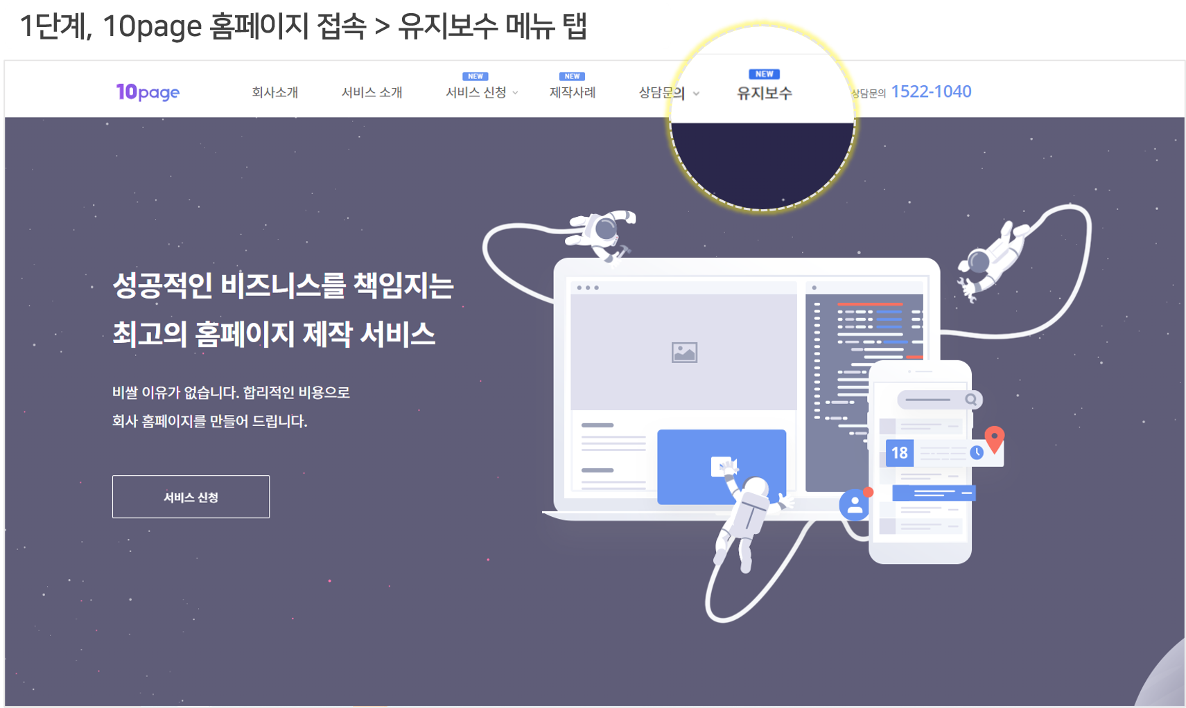 접속하시면, 상단 메뉴 탭에서 유지보수를 찾으실 수 있는데요.