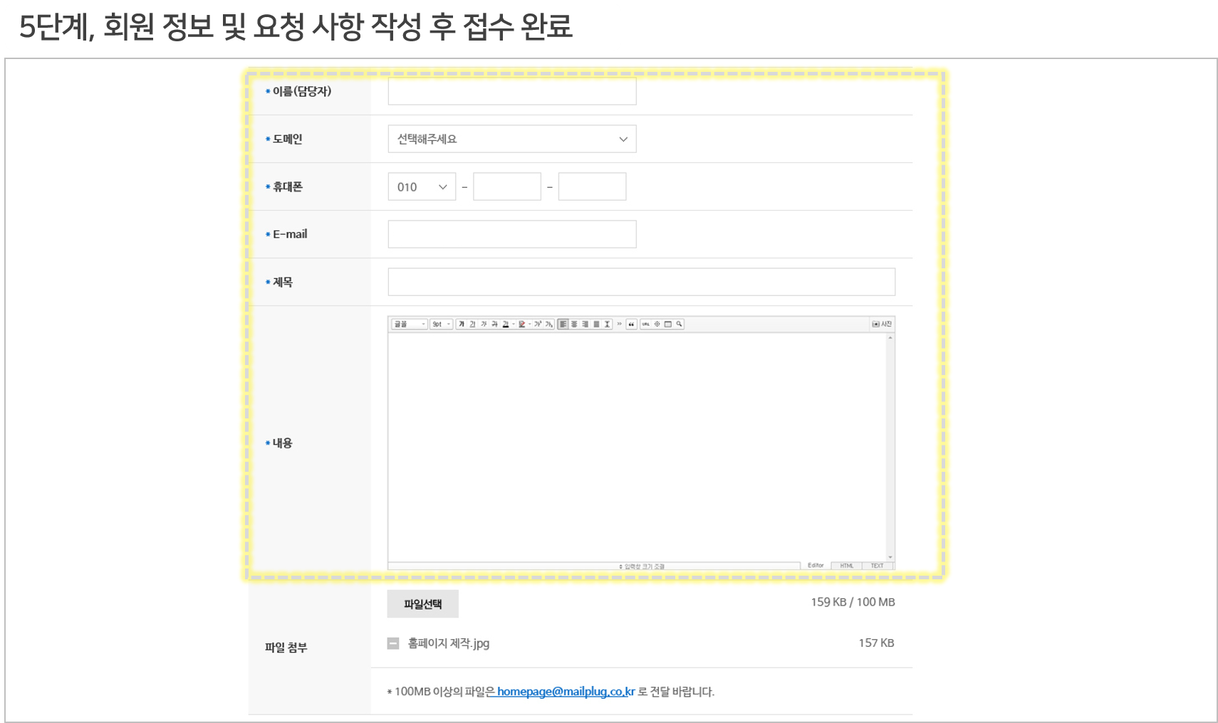 이름, 연락처, 요청 사항을 상세하게 작성하신 후,