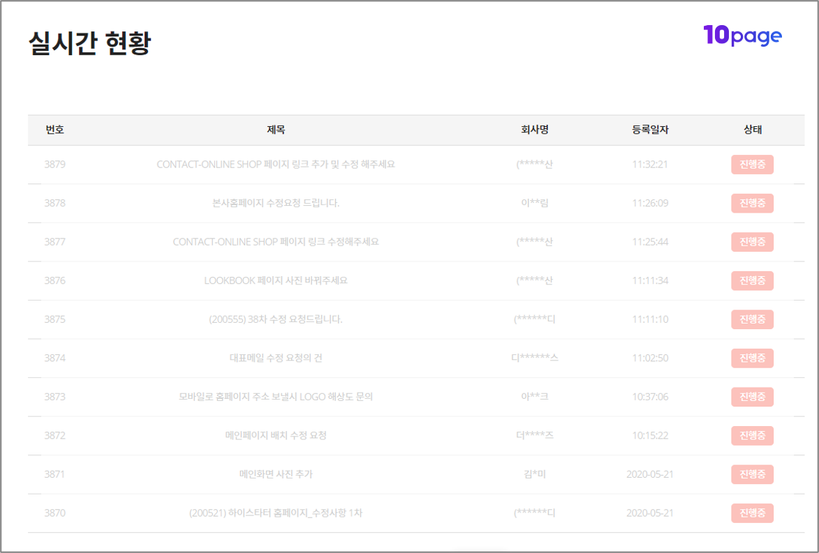 요청하신 내용이 접수되었는지, 작업이 진행되고 있는지 확인하실 수 있습니다.
