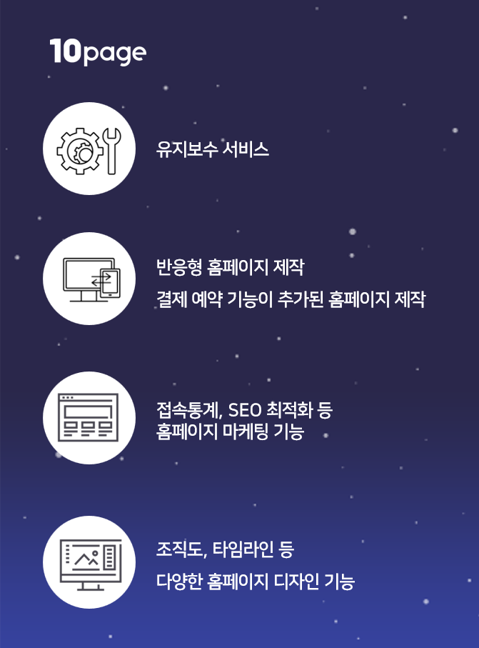 10page에서는 앞서 말씀드린 사후관리뿐만 아니라 반응형 홈페이지 제작,