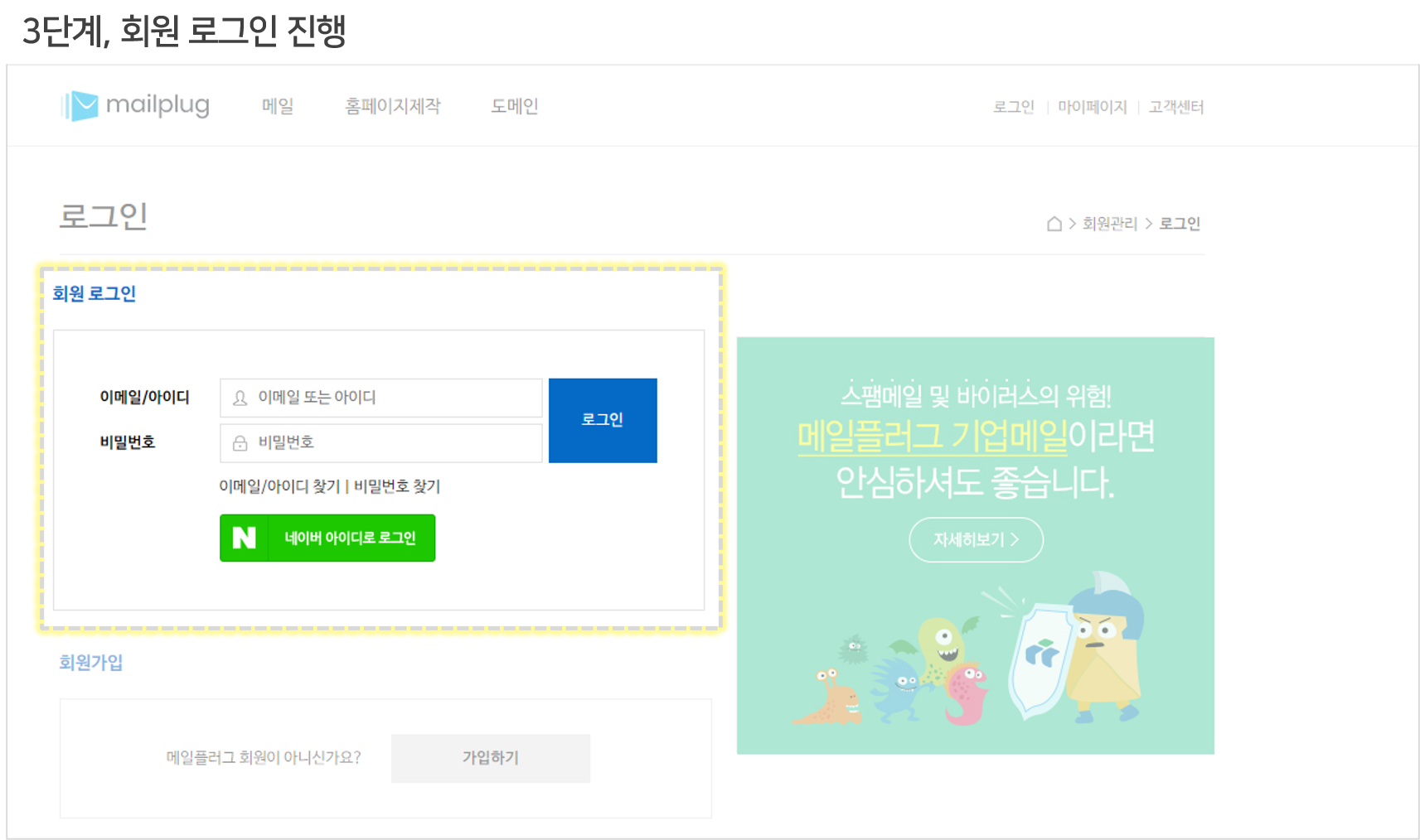웹페이지 제작 시, 사용하셨던 아이디와 비밀번호로 로그인을 진행해주세요.