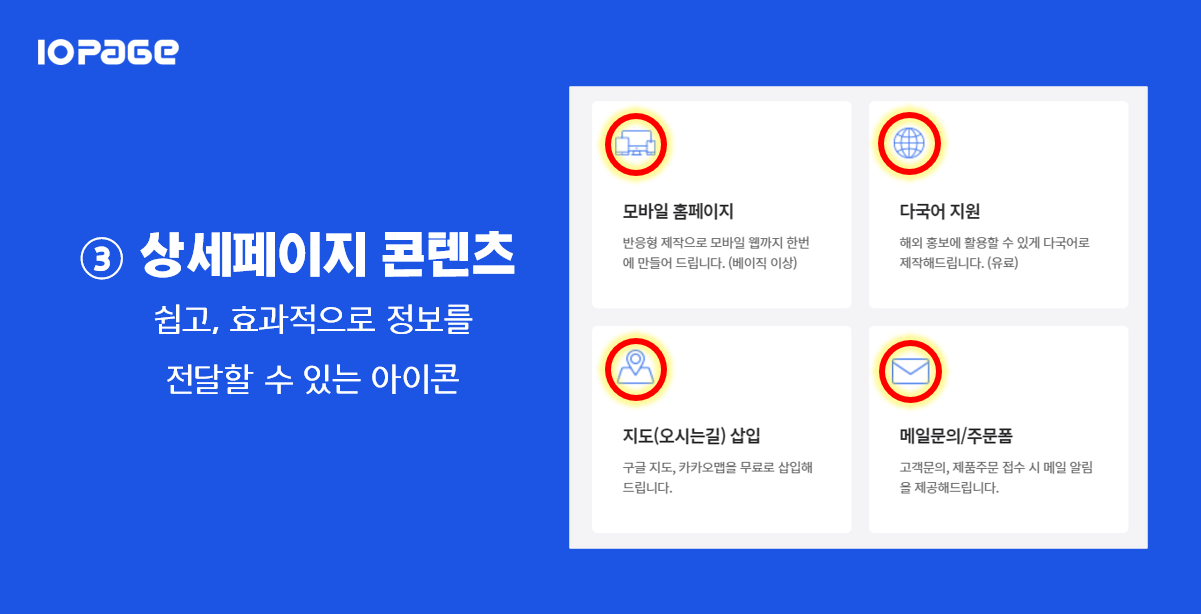 사업영역 등 메뉴 버튼에 웹사이트 아이콘 디자인을 활용할 수 있습니다.