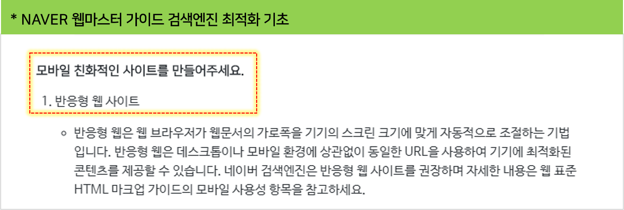 두 사이트 모두 모바일 친화를 위해 반응형 디자인을 권장하고 있는 것을 확인할 수 있었습니다.