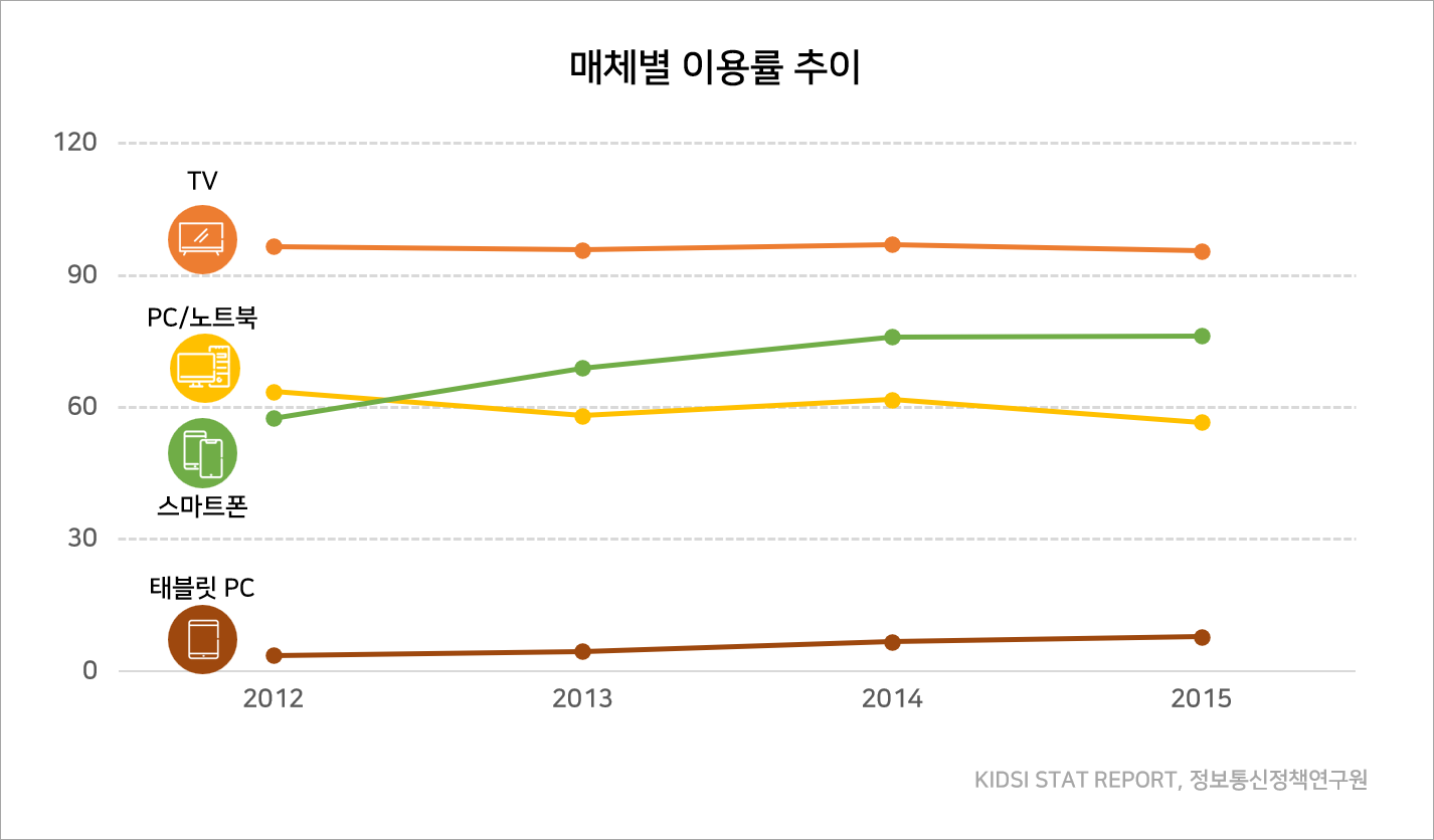 위 이미지를 보시면, 스마트폰과 태블릿 PC의 이용률이