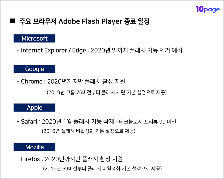 엣지와 인터넷 익스플로러 플래시 지원 종료는 2020년 말까지 진행될 예정이며,