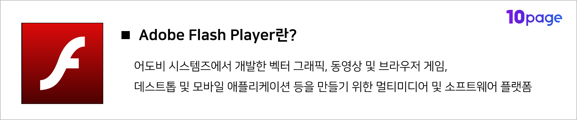 위의 정의처럼 Adobe Flash Player는 소프트웨어 플랫폼으로 웹에서 많이 사용되며
