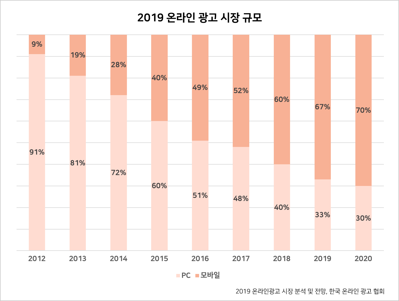 2017년부터 모바일 광고는 PC를 앞질렀는데요.